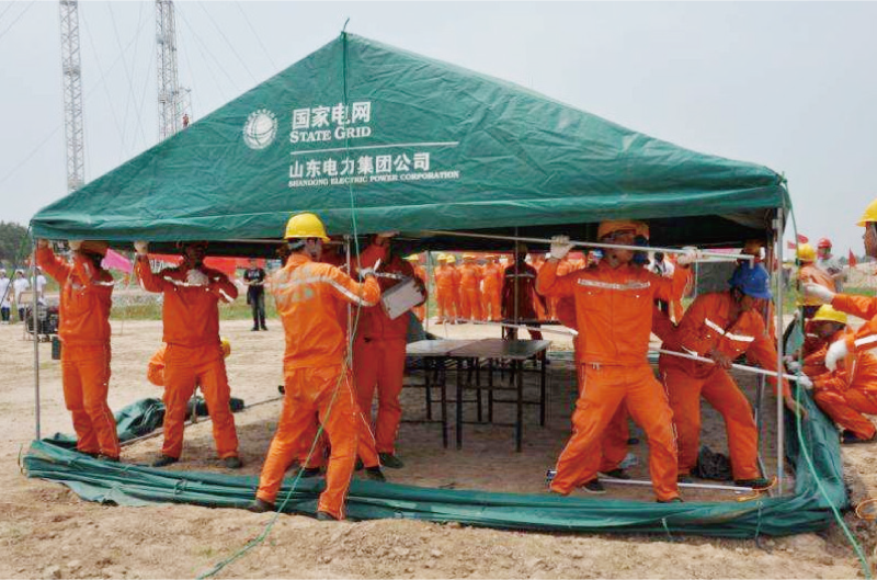 本項目在虛擬環(huán)境中配置全面的教育實訓物 資裝備,主要進行現(xiàn)場指揮部或營地的快速 搭建技能實訓,包括帳篷搭建、現(xiàn)場辦公環(huán) 境、營地供電系統(tǒng)建設、照明設施布置、衛(wèi) 星通訊組建等任務,訓練統(tǒng)一組織、統(tǒng)一指 揮,在團隊有機配合下快速搭建臨時帳篷的 能力,在最短的時間內(nèi)布置好帳篷內(nèi)的照明 設施、生活設施、辦公設施,快速組建應急 通信系統(tǒng),完成應急指揮所或營地的建設, 為保證救援有序進行打下基礎。